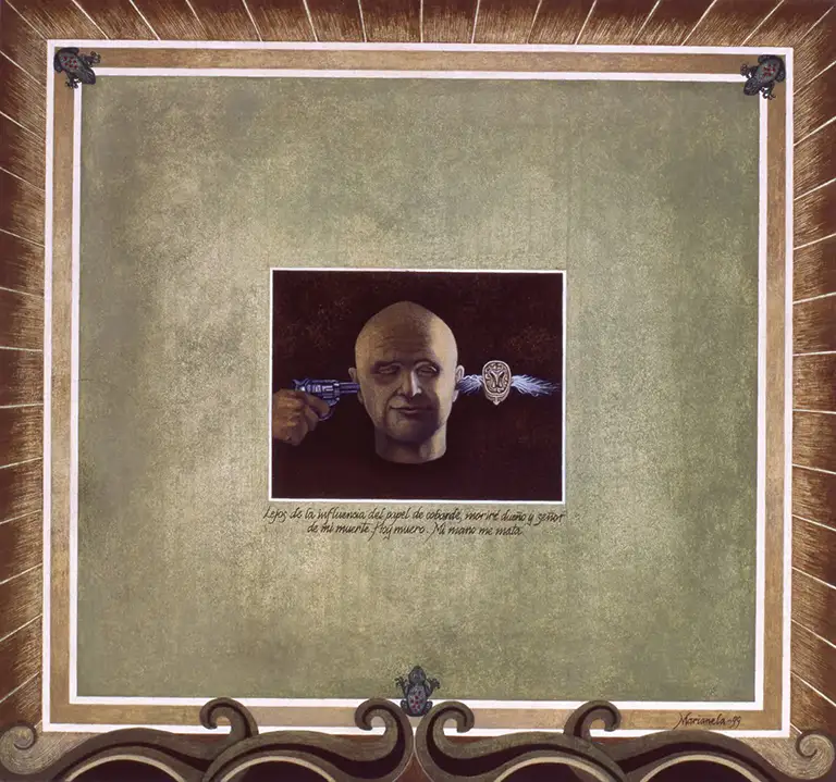 Dueño y señor de mi muerte.- Master and owner of my death. 2011. Egg tempera and mixed media assemblage. 28 x 20.6 x 3 in.